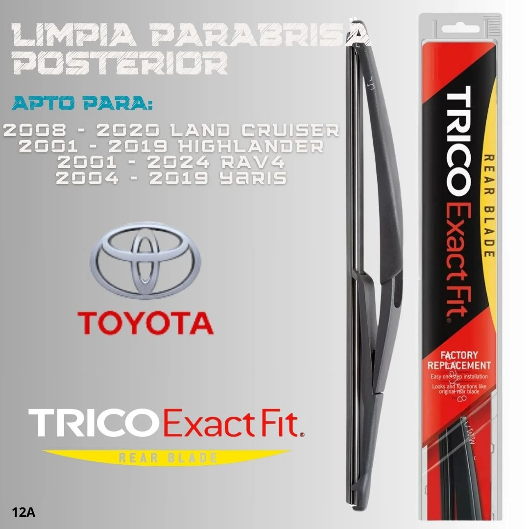 La plumilla posterior Trico para tu Toyota RAV4 garantiza una visión clara y segura en la parte trasera. Es un reemplazo de alta calidad, diseñado específicamente para tu vehículo.